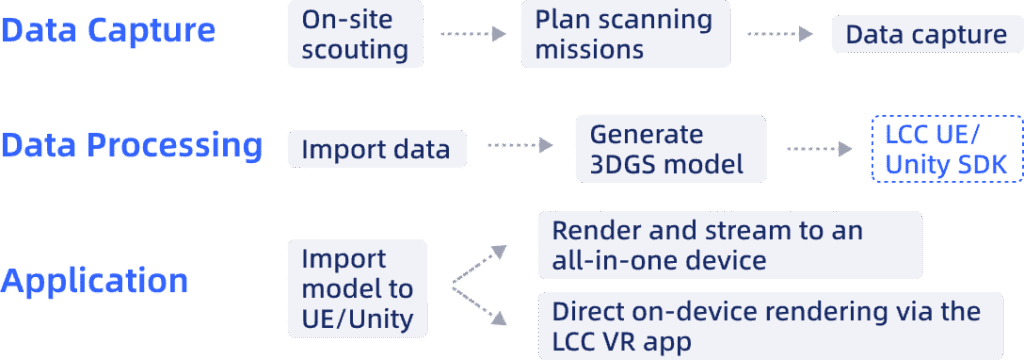 Data Pipeline: Import Lixel CyberColor (.lcc) formatted 3D scene data with seamless compatibility. Render large 3D Gaussian scenes with exceptional fidelity for truly immersive VR experiences.