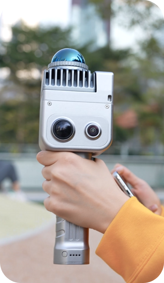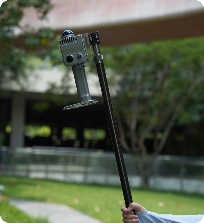 Multi-SLAM algorithms ensure reliable capture in challenging environments. 48MP panoramic cameras capture rich color data while 360° LiDAR provides comprehensive spatial coverage at 200,000 pt/s. IP54 rating handles real-world conditions.