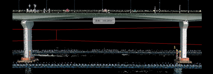Every two piers of the bridge are about 150 meters apart. The bridge is made of smooth cement slab material, which belongs to the few feature points and featured texture areas, posing a challenge to the scanning operation of LiDAR scanners.