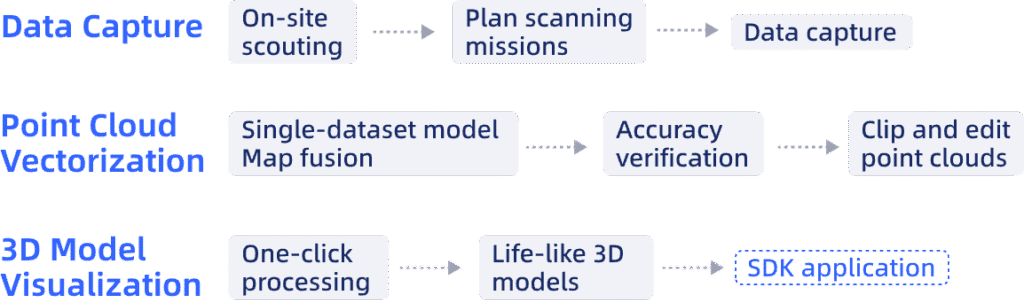 Capture real-time, true-color point clouds with "what you see is what you get" accuracy, powered by advanced Multi-SLAM for precise point cloud colorization.